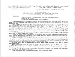 THƯ TANG KÍNH VIẾNG NGÀI NGUYỄN PHÚ TRỌNG CỦA BAN TRỊ SỰ TRUNG ƯƠNG GIÁO HỘI PHẬT GIÁO HÒA HẢO