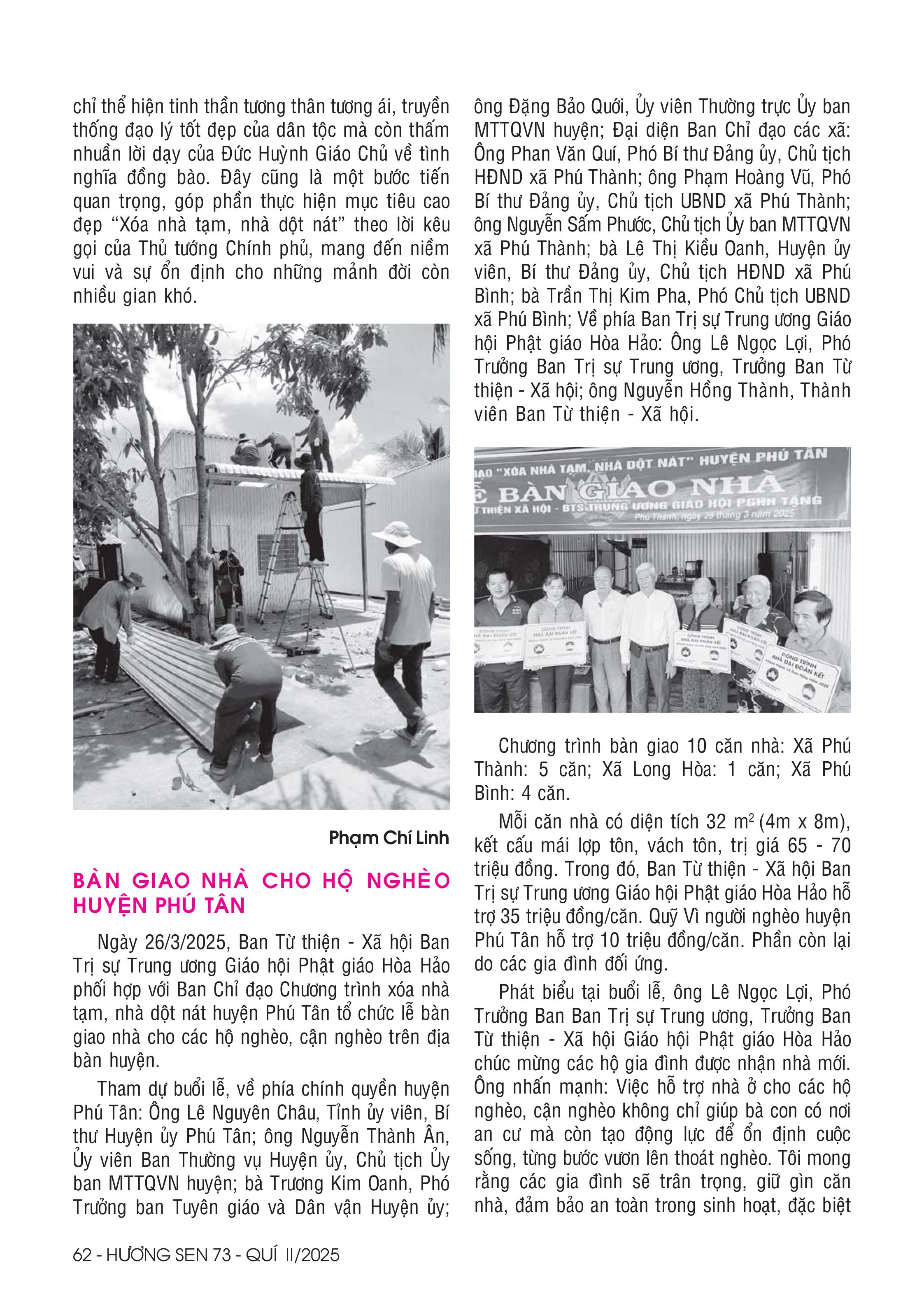 - PHẬT GIÁO HÒA HẢO VỚI ĐẠO SỰ CẤT NHÀ CHO NGƯỜI NGHÈO